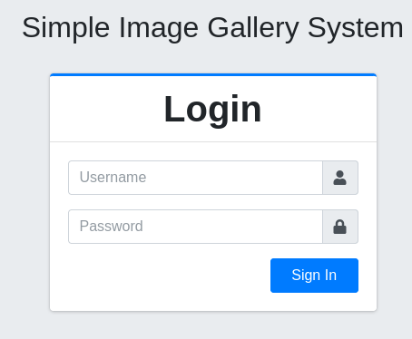 subdirectory. Checking the website on port 8080 results in just getting redirected back to this page too. We find a login page for “Simple Image Gallery System”.