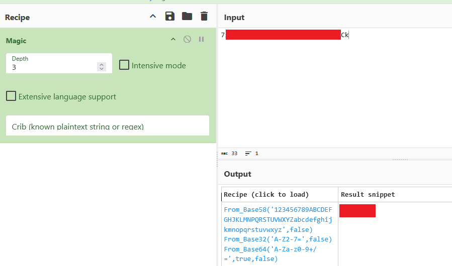 The password we found early didnt work, but the note indicated it “cooked with magical formula”. We use CyberChef to decode it and it gives a valid looking password.