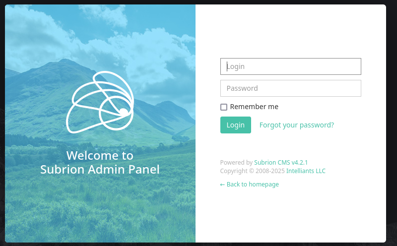 The interesting one is panel, and going there displays a login page for subrion cms.
