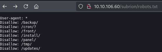 [+] Trying to connect to: http://10.10.106.60/subrion/panel/